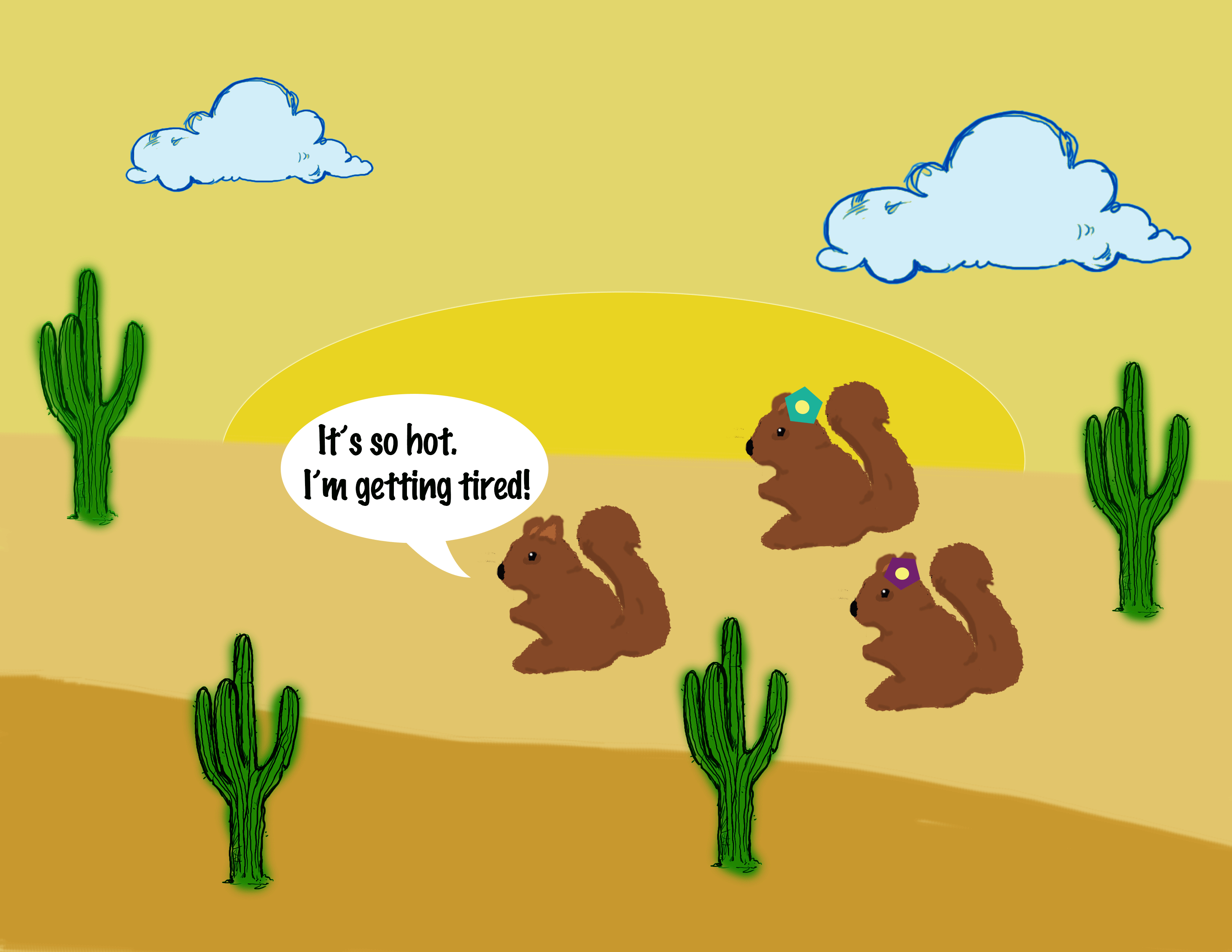 The next phase of the race was the extremely hot, sandy desert. Facing both sandstorms and the deathly heat, all the squirrels were burning up under their winter coat of fur. Sally and Chester are still extremely determined to finish the race, while Scurry is beginning to get tired. Regardless of the heat, Scurry made a promise to finish the race and he isn't a squirrel to break his promises!